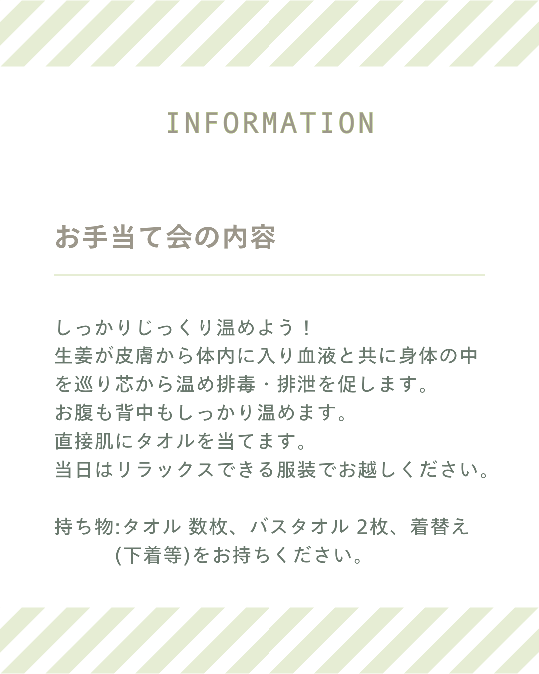 ※当日は直接肌にタオルを当てるため、リラックスできる服装でお越しください。